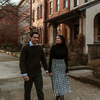 The bond exchanged between two souls is sacred. It's built on thousands of hours worth of conversation, gently removing stones from the walls erected to guard our hearts; it's built on millions of seconds spent learning each tiny freckle on their cheeks and remembering where they're most ticklish. Finding love and choosing to nurture that love is a brave and crazy thing to do; it is a risk to love and to be loved. But when you find your person, you just know. You know that you'll go to the ends of the earth to do right by them and protect their soft hearts from the ugliness of the world. When that love exists, it's sacred. Which is why I completely understand why Mara and William are opting for an elopement this spring, just the two of them. For me, it's a total honor they've entrusted me to document this sacred moment in their story. Being their eyes and capturing the present moment for them is exactly why I'm so happy to return to photographing love stories. I am a hopeless romantic and have been in love with the idea of love since I was probably 4 years old. My intention is to photograph each wedding as if it were my own; freezing the fleeting moments and carefully chosen details. While Mara and William will be my second wedding of the year, they were my first engagement session and let me just say: THE BAR HAS BEEN SET. We started out in Oakland, their favorite Pittsburgh neighborhood, at the Carnegie Library and Museums. The architecture and details transported me to Rome and I was totally inspired by past issues of Vogue Italia. After making our way around the gorgeous sites, nestled among the University of Pittsburgh campus, we headed to the North Shore and settled in Allegheny Commons. The Victorian-style townhomes and overgrown ivy felt like we were strolling in Brooklyn and immediately my heart ached for New York City (note to self: plan a visit before the end of the year). The quiet streets and historic homes were the perfect end to our session, as we parted ways (Mara and William to dinner, me back to Carnegie to emotionally prepare myself for the new episode of The Last of Us; IYKYK).